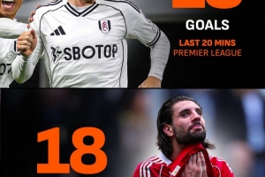 本赛季在英超赛场上,富勒姆在比赛最后20分钟共打进18球,而利物浦在这个时间段里则丢了18球,两队的表现大相径庭。
