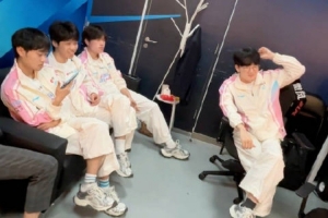 体育资讯4月12日讯 BLG分享选手后台花絮,并配文:沙发争夺战(其实是k去采访了。