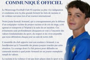 蒙鲁日92俱乐部表示:“我们年轻的注册球员阿尔芒,因勇敢地为一名遭受种族主义言论和猴子叫声攻击的队友挺身而出,在事件中遭到袭击并被送往医院。