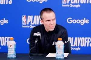 记者问:“教练,你能不能谈谈,显然你们过去几年多次交手,但在这个赛季,比起常规赛,你觉得他们在季后赛的身体对抗方面有什么不同吗?如果有的话。”