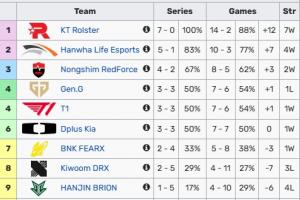 目前KT战绩为7胜0负稳居LCK积分榜榜首,排名第二的是5胜1负的HLE。