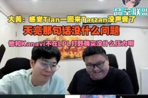 大黄:感觉Tian一回来Tarzan没声音了,天亮那句话没什么问题,他和Kanavi不在LPL打野确实没什么压力啊。