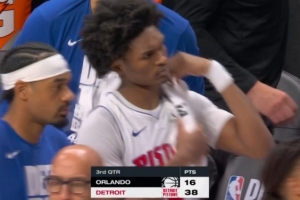 第三节,活塞攻防两端压制对手,一度轰出30-3的进攻狂潮,单节38-16净胜对手22分。半场结束时双方战成46平。