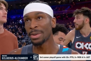 体育资讯4月23日讯 今日NBA西部季后赛首轮G2,雷霆120-107拿下太阳,大比分2-0领先。赛后亚历山大在场边和发布会接受了媒体采访,以下为采访全文。