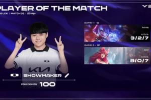 体育资讯4月23日讯 ShowMaker整个系列赛发挥出色,斩获DK对阵BRO系列赛POM,这也是ShowMaker首次斩获本赛段LCK常规赛POM。