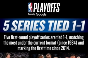 据统计,这是联盟自1984年开始实行目前季后赛的赛制以来,首轮出现1-1的对决最多的一年季后赛,同时也是自2014年以来的首次。