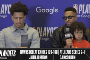 体育资讯4月24日讯 NBA季后赛东部首轮G3,老鹰109-108险胜尼克斯,大比分2-1领先,赛后麦科勒姆和杰伦·约翰逊接受了媒体采访,以下为采访全文。