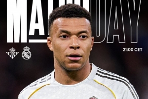 皇马官方社媒发布了为此役制作的海报,队内前锋姆巴佩单人出镜。