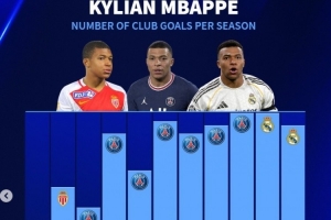 体育资讯4月25日讯 《转会市场》统计了姆巴佩俱乐部生涯各赛季进球数情况,已连续6个赛季至少打进39球。本赛季在还剩6轮联赛的情况下,距离个人单赛季进球纪录仅差3球。
