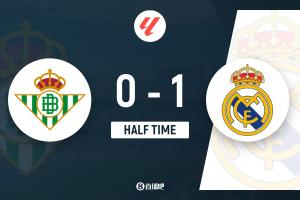 半场-皇马1-0贝蒂斯 维尼修斯补射破门卢宁屡神扑