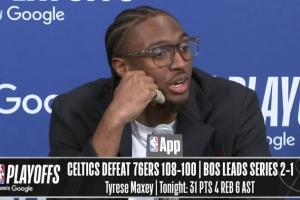 马克西:在决胜时刻。在决胜时刻,你知道,他们不会情绪波动太大。在特定的战术执行中,他们所有人都清楚自己在做什么。他们所有人都知道想要打出什么战术。你懂我的意思吗?他们有着那种化学反应,他们清楚场上的局势。你知道,怀特知道自己什么时候需要去设置掩护。普理查德知道自己什么时候该干什么,他们所有人都是。那是件好事。你懂我的意思吗?那是,你知道的,就像你说的,他们在一起很久了,一起经历了那些战斗和鏖战。而你必须,还是那句话,对我们而言,你必须去战斗。必须拼尽全力去战斗,并且把他们逼到极限。我们能做到这一点,我们也会做到的。