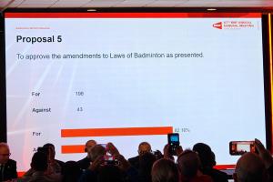 体育资讯04月25日讯 世界羽联今天在丹麦举行了第87届年度会员大会,会议上对“3×15分制”改革议案进行了投票表决,最终该议案获得198票赞成,43票反对,赞成率超过三分之二,“15分制”改革被正式通过。