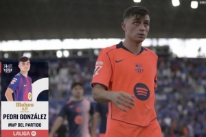体育资讯4月26日讯 西甲第32轮,巴萨客场2-0战胜赫塔费,佩德里获评全场最佳球员。