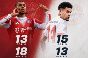 本场比赛奥利塞破门,自2004/05赛季开始详细数据统计以来,本赛季之前还没有任何一名拜仁球员能够在单个德甲赛季中同时取得13个或以上的进球和助攻,而本赛季奥利塞(13球18助)、迪亚斯(15球13助)双双做到这一点。