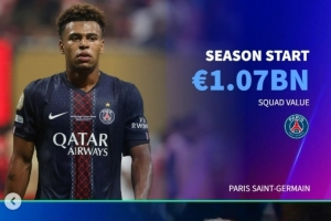 体育资讯4月26日讯 德转盘点了在本赛季身价上涨最多的几支球队,其中巴黎、科莫、考文垂在列,具体如下(赛季开始身价→目前身价):