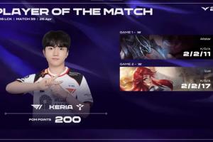 体育资讯4月26日讯 在刚刚结束的LCK常规赛的比赛中,Keria两局合砍4/4/28的战绩,拿下T1对阵BFX系列赛MVP。