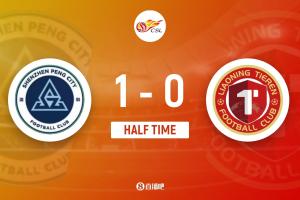上半场补时3分钟,深圳新鹏城1-0辽宁铁人。