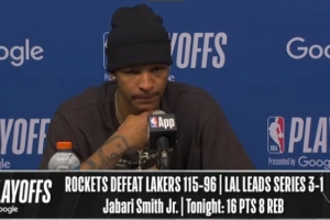 体育资讯4月27日讯 火箭在主场以115-96击败湖人,将系列赛比分扳至1-3。赛后史密斯接受了媒体采访,以下为采访全文。