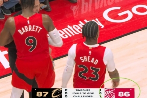 今天骑士客场89-93不敌猛龙,大比分被扳成2-2平。