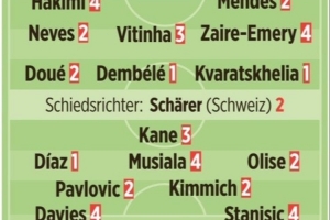 体育资讯4月29日讯 巴黎在本轮欧冠主场5-4击败拜仁,《图片报》按照惯例为两队进行了赛后评分。