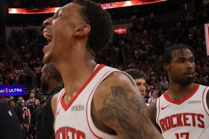 体育资讯4月30日讯 今日NBA季后赛首轮G5,火箭99-93战胜湖人,大比分变为2-3。赛后小贾巴里·史密斯接受了孟超的采访。
