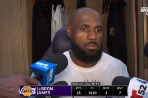 体育资讯4月30日讯 NBA季后赛,湖人93-99不敌火箭,大比分来到3-2,詹姆斯赛后接受了媒体采访,以下为采访完整版原文。