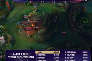 体育资讯4月30日讯 今日LCK常规赛Gen.G对阵KRX的第三局比赛中,Kiin使用奎桑提达成4000助攻的里程碑,助攻数位列LCK上单位第一!