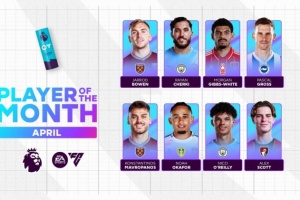 体育资讯4月30日讯 英超官方列出了4月最佳球员的8人候选名单,曼城和西汉姆联各2人入选: