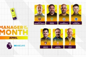 体育资讯4月30日讯 英超官方公布了4月最佳主帅的7人候选名单,瓜迪奥拉、斯洛特是唯二3战全胜的主教练:
