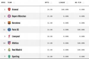 体育资讯04月08日讯 欧冠1/4决赛首回合结束了两场较量,皇马主场1-2不敌拜仁,阿森纳客场1-0战胜葡体。Opta超算更新了最新的欧冠夺冠概率。